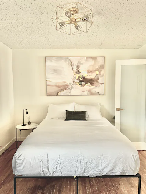 Luxury Bedding and Linens: We outfitted the bedroom with a plush, high-thread-count bedding set and soft, hypoallergenic pillows to ensure a luxurious night’s sleep.